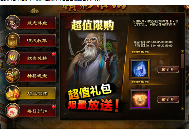 活动内容:活动期间藏宝阁限时折扣出售保级石等道具。