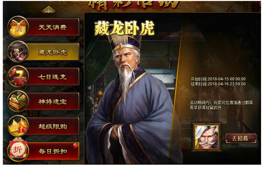 活动内容:活动期间酒馆限时驻留金色武将袁绍,PVP强力推荐。