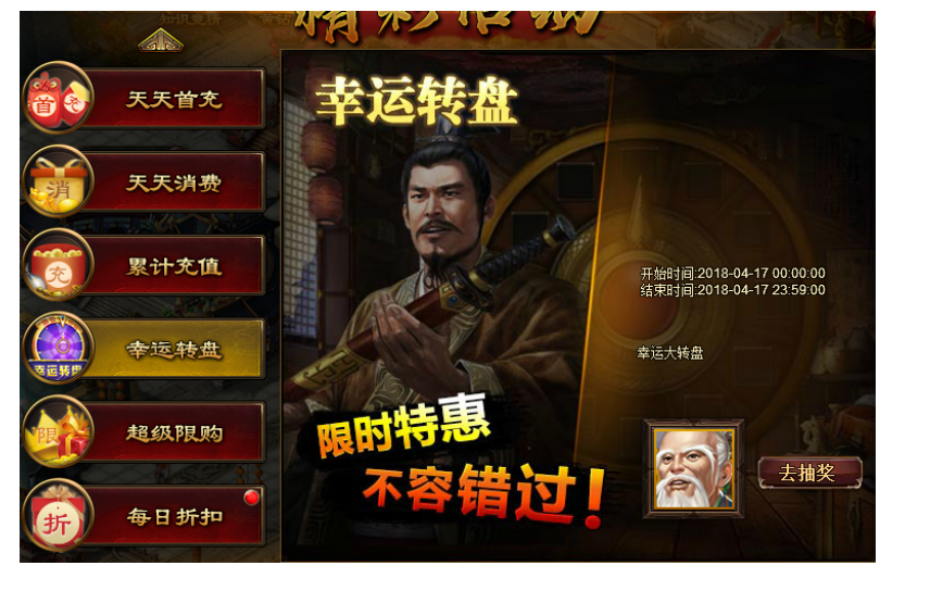 活动内容:活动期间转盘限时驻留金色武将华佗,PVP强力推荐。