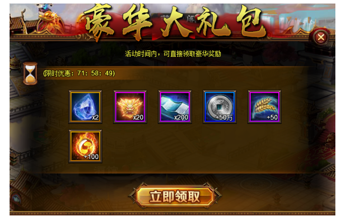 活动内容:活动期间登录游戏即可领取豪华大礼一份。
