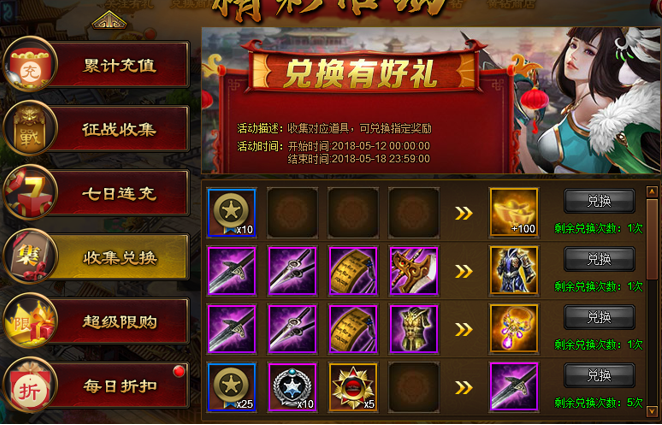 活动内容:活动期间每天攻打或扫荡征战城池有几率掉落特殊道具,用于兑换丰厚奖励。