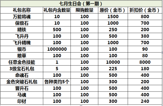 下期预告!下期预告!下期预告!七月生日会(第二期):【金色装备】、【红色装备】大折扣!!