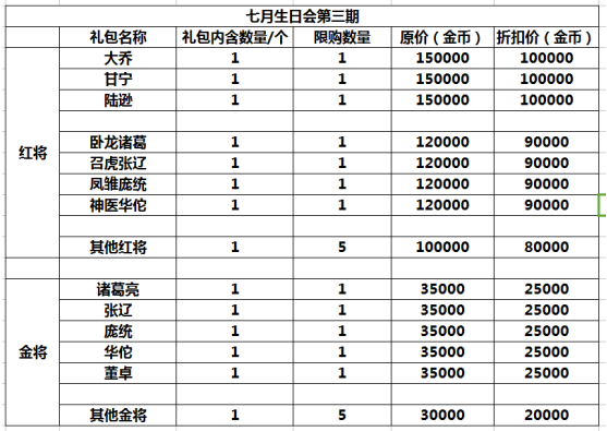 【七月生日会】第三期,金将、红将惊喜回馈,巅峰特惠!