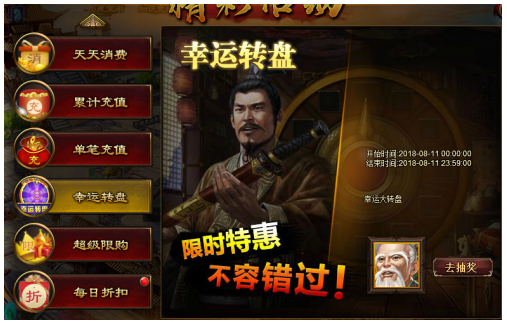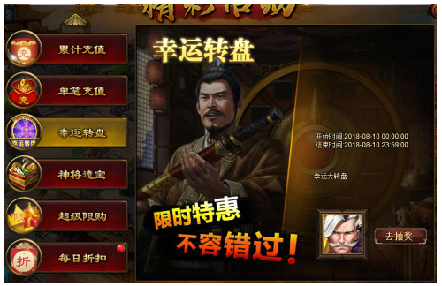 活动内容:活动期间转盘驻留金色武将华佗,已开启限时折扣。