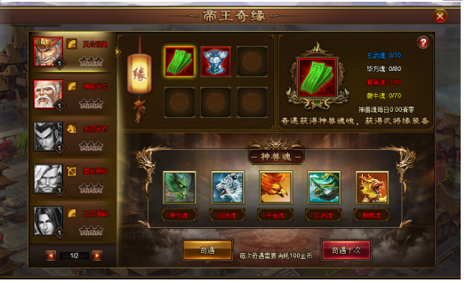 活动内容:活动期间可通过奇遇一次或奇遇十次神兽魂魄,收集神兽魂魄达到要求可获得红色装备或红色技能。