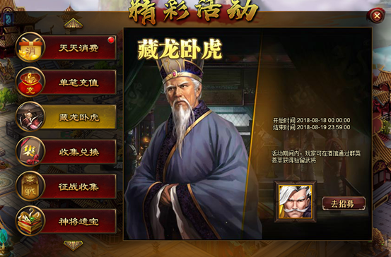 活动内容:活动期间酒馆限时驻留金色武将袁绍,PVP强力推荐。