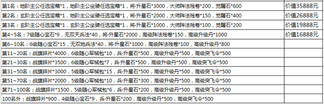 活动结束后,排行榜上玩家依据排名领取对应礼包。