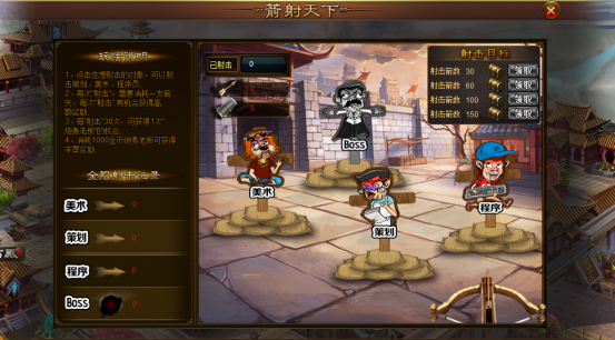 活动内容:活动期间射击Boss、美术、策划、程序均可获得丰厚的奖励,已下调射击Boss所需金币数量。