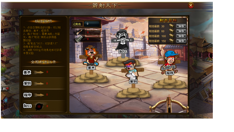 活动内容:活动期间射击Boss、美术、策划、程序均可获得丰厚的奖励,已下调射击Boss所需金币数量。