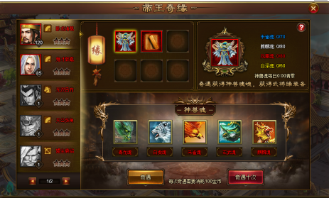 活动内容:活动期间可通过奇遇一次或奇遇十次神兽魂魄,收集神兽魂魄达到要求可获得金色装备或金色技能。