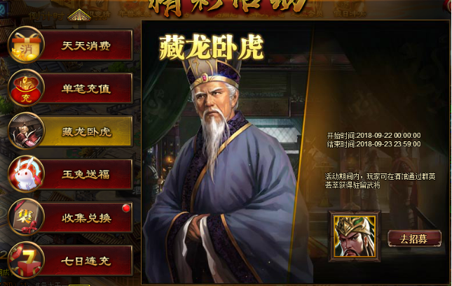 活动内容:活动期间酒馆限时驻留金色武将关羽,PVP强力推荐。