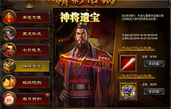 活动内容:活动期间酒馆限时驻留红色武将武圣关羽,PVP强力推荐。