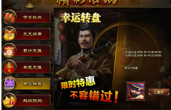 活动内容:活动期间转盘驻留红色武将凤雏庞统,已开启限时折扣。