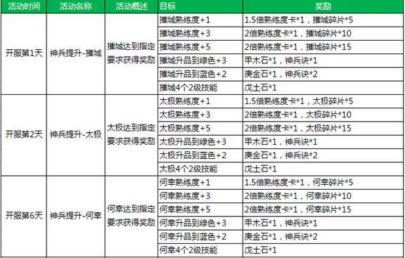 新服活动5:神兵提升--摧城、太极、何幸