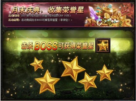 【活动内容】活动期间,玩家通过击杀BOSS可获得荣誉星。