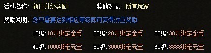 活动六:新区玩家升级奖励