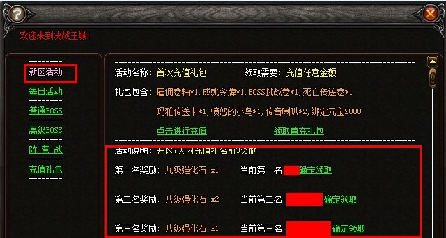活动四:新区充值累计有豪礼极品装备等你拿