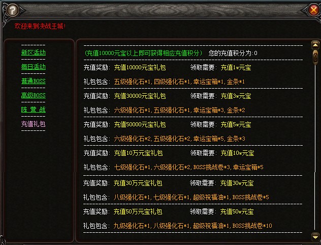 活动五:充值存积分,礼包大兑换