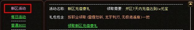 【领取方式】:点击游戏界面右上角“活”进入窗口内新区活动页面,如下