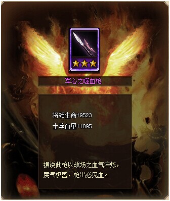 累计充值10金币,即可获得:绿色将魂初始怒气*1、银币*5万、行动力*10、军心之噬血枪*1