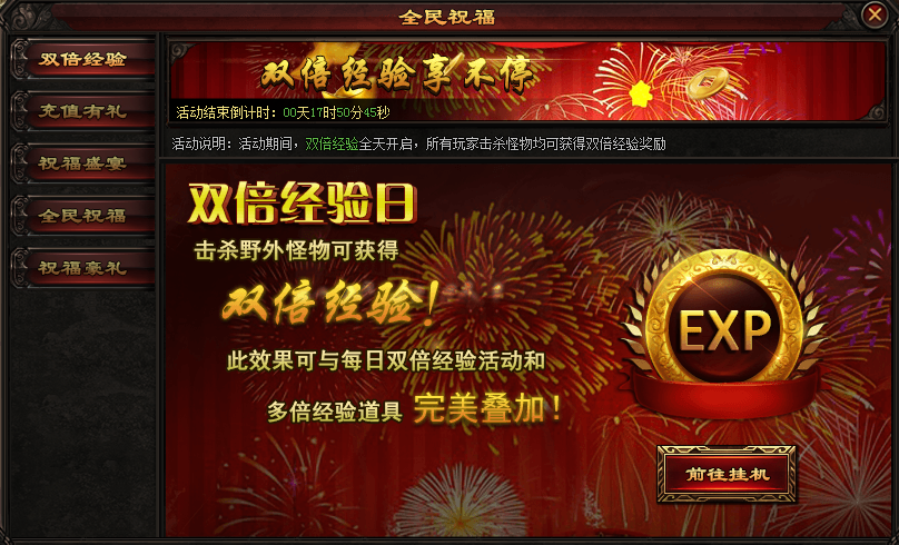 活动期间全天经验双倍开启