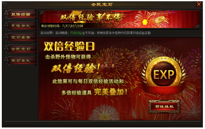 活动内容:活动期间全天经验双倍开启,升级更迅速!