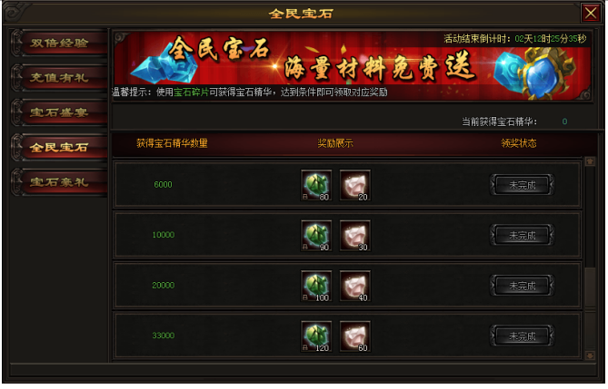 活动内容:活动期间,获得宝石碎片达到一定数量,即可领取对应奖励。