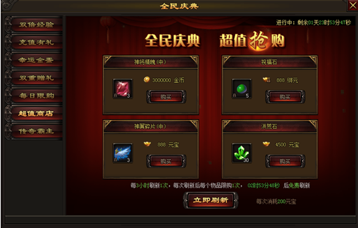 活动内容:活动期间,超值商店限时开启,各种道具买买买!
