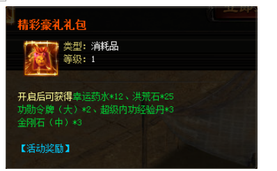 59999 | 祝福石(大)*2、内功经验丹(大)*4 |
