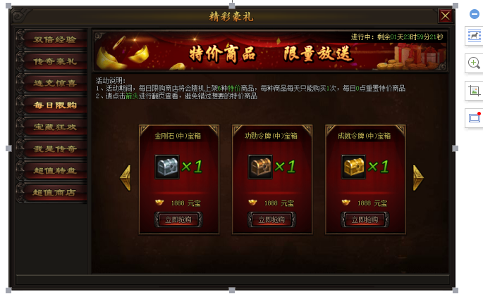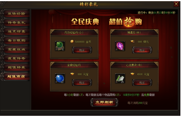 活动期间,每天可以购买部分限量折扣道具,超值优惠,机不可失!