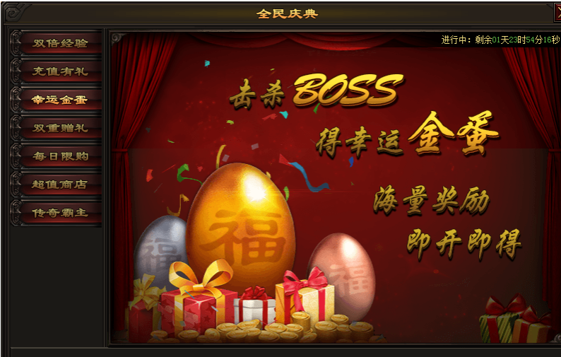 活动内容:击杀BOSS即有机会获得铜蛋、银蛋和金蛋,可开出诸多丰厚奖励额!