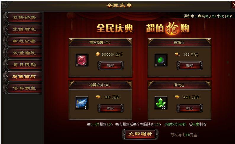 活动内容:活动期间,超值商店限时开启,各种道具买买买!