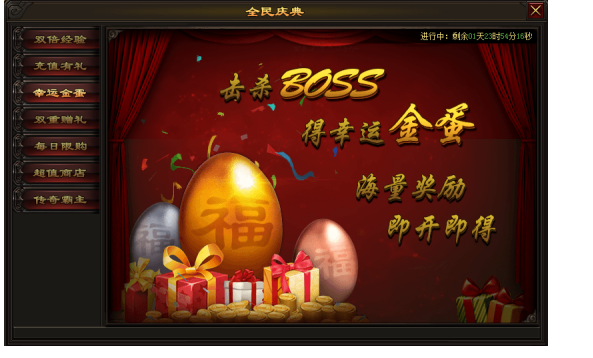 活动内容:击杀BOSS即有机会获得铜蛋、银蛋和金蛋,可开出诸多丰厚奖励额!