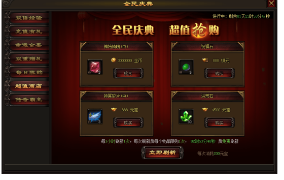 活动内容:活动期间,超值商店限时开启,各种道具买买买!