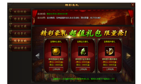 活动内容:活动期间,各种超值折扣礼包任您选购,限时限量,机不可失哦!!!