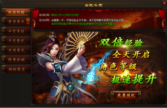 活动第一天,双倍经验全天开启,消灭怪物都可以获得双倍经验奖励
