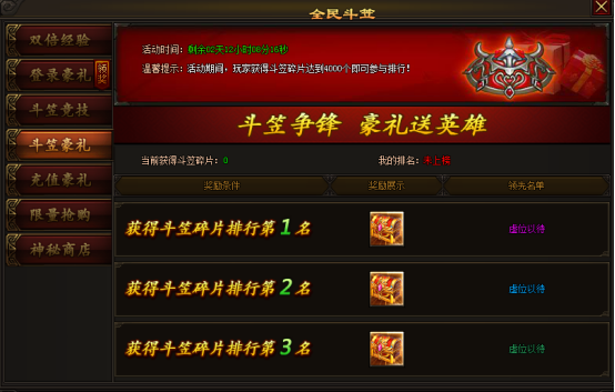活动期间,获得斗笠碎片达到4000个即可参与排行榜。