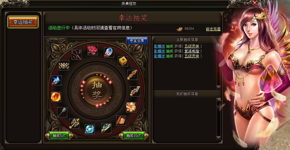 活动内容:活动期间玩家每花费20元宝即可抽奖一次,拼的是人品,齐贺四月新版本,春意浓浓,鸟语花香,烈火战神也持续高走,各大活动将持续给力。