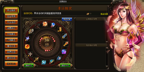 活动内容:活动期间玩家每花费20元宝即可抽奖一次。运气是实力的一部分,来验证你的实力是否胜人一筹吧!