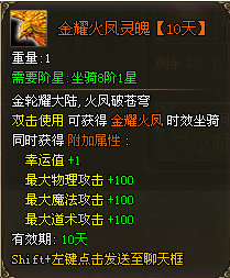 活动期间每位玩家当日消费满5000元宝,即送金耀火凤灵魄【10天】*1每天统计一次