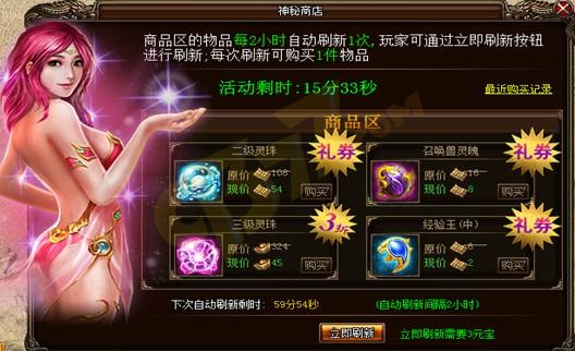 懂生活,才能活得滋润!9377《烈火战神》神秘商店隆重登场,每时每刻都有新鲜特价商品上架,高级道具超低价打折出售!从此不用再为虚脱的钱包哭天抢地,来神秘商店“淘”你喜欢吧!