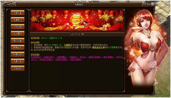 活动介绍:活动期间,在元宵活动的特别怪物身上会掉落元宵礼盒,需要使用在商城购买的新年秘钥打开。