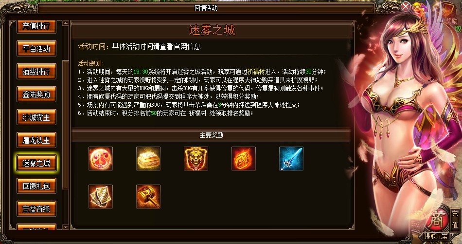 2、 每天的19:30分,迷雾之城将对50级以上的玩家开放;