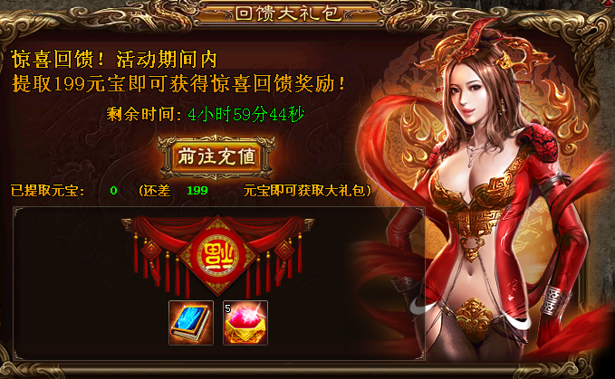 活动内容:只需要充值提取199元宝就能获取珍贵的回馈奖励