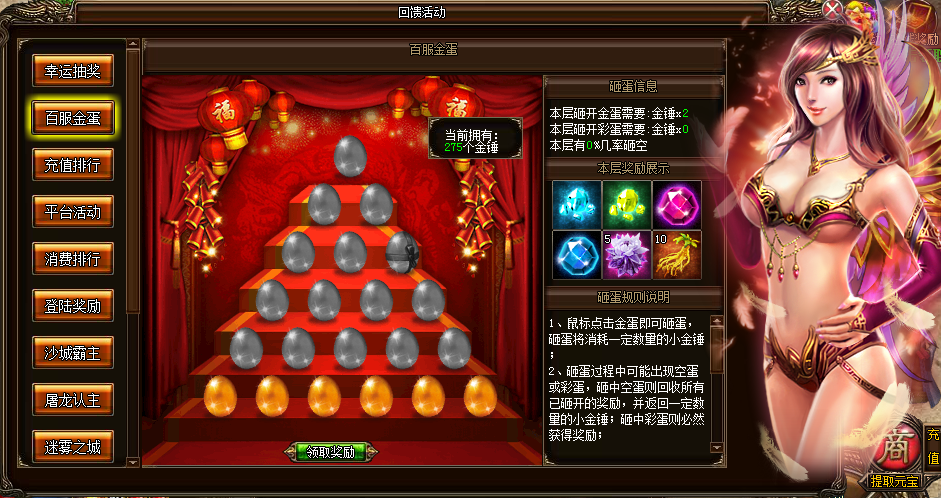 砸蛋区大部分为金蛋,有几率出现彩蛋;