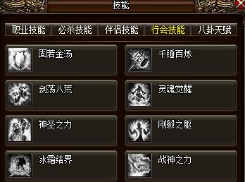 行会主殿达到一定等级开启行会技能,会长/副会长可以使用行会资金提升行会技能,行会成员可以消耗经验、行会贡献、金币来学习技能。行会技能可提升的等级上限受行会主殿影响,角色离开行会行会技能失效。