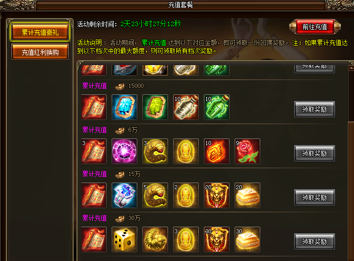 充值有好礼,累计充值更是豪,五花八门、琳琅满目,不忍直视!心动不如行动,速速拿下吧!