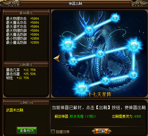 由16阶神器碧海银涛升阶,出鞘阵法十七天星阵。