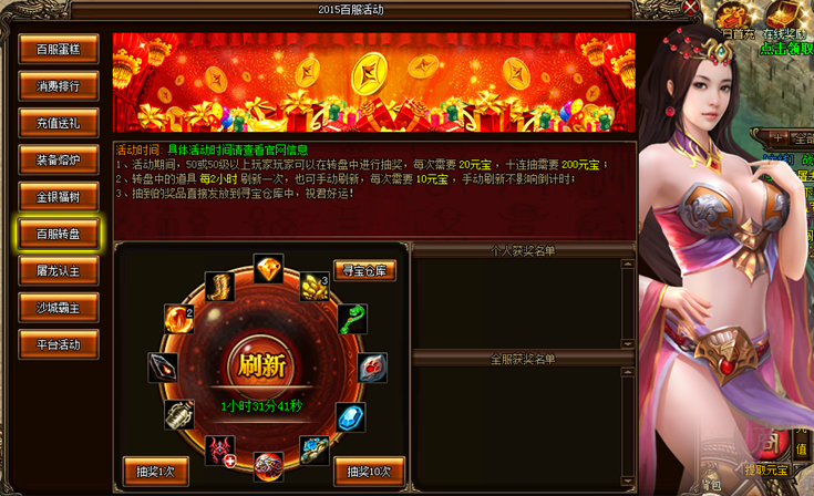 1、 活动期间,玩家可在活动面板中进行抽奖,每次抽奖需要20元宝;