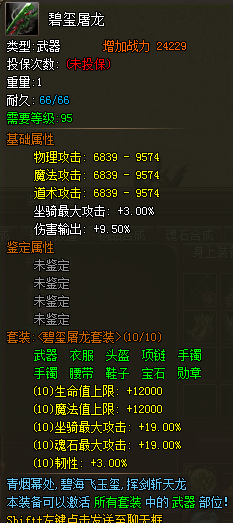 新增碧玺屠龙套装,可由北冥屠龙套装及玄空石升级获得。